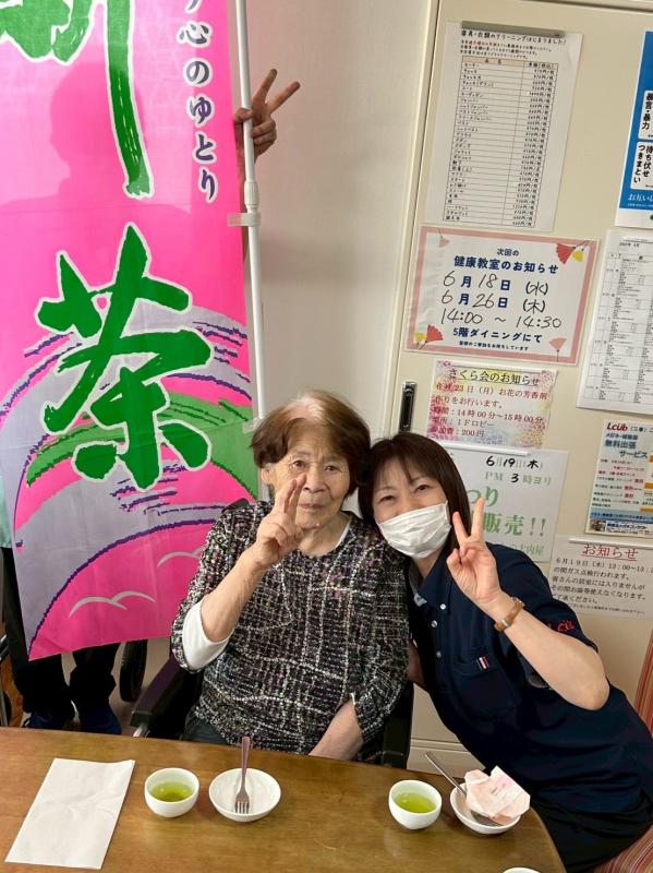 エルキューブ三春居住棟です! 6月19日に 🌿✨新茶祭りを開催しました✨🌿 今年も新茶の季節がやってきました! お茶屋さんに来て頂き、香り豊かな新茶の試飲・販売を行いました🍵